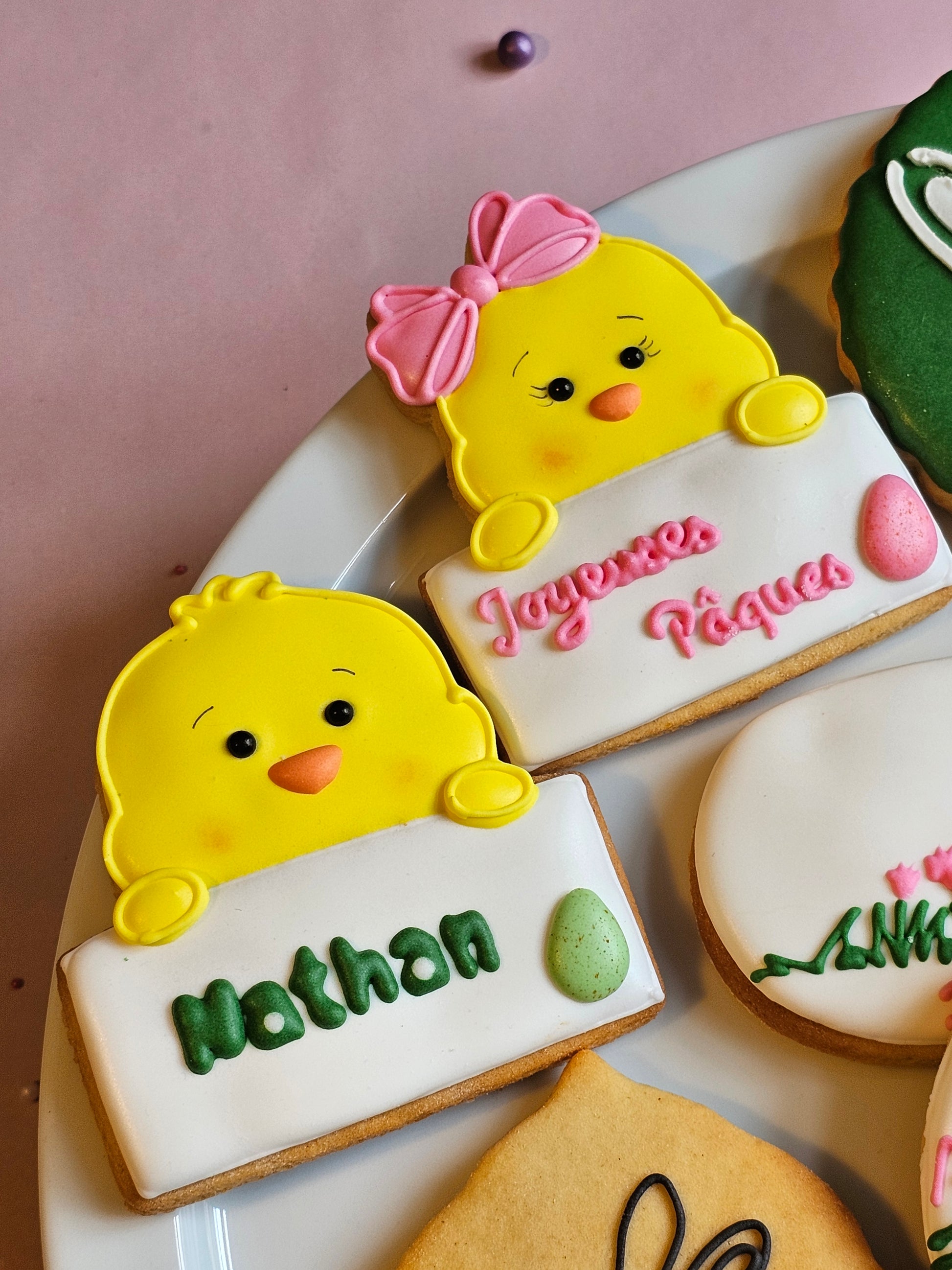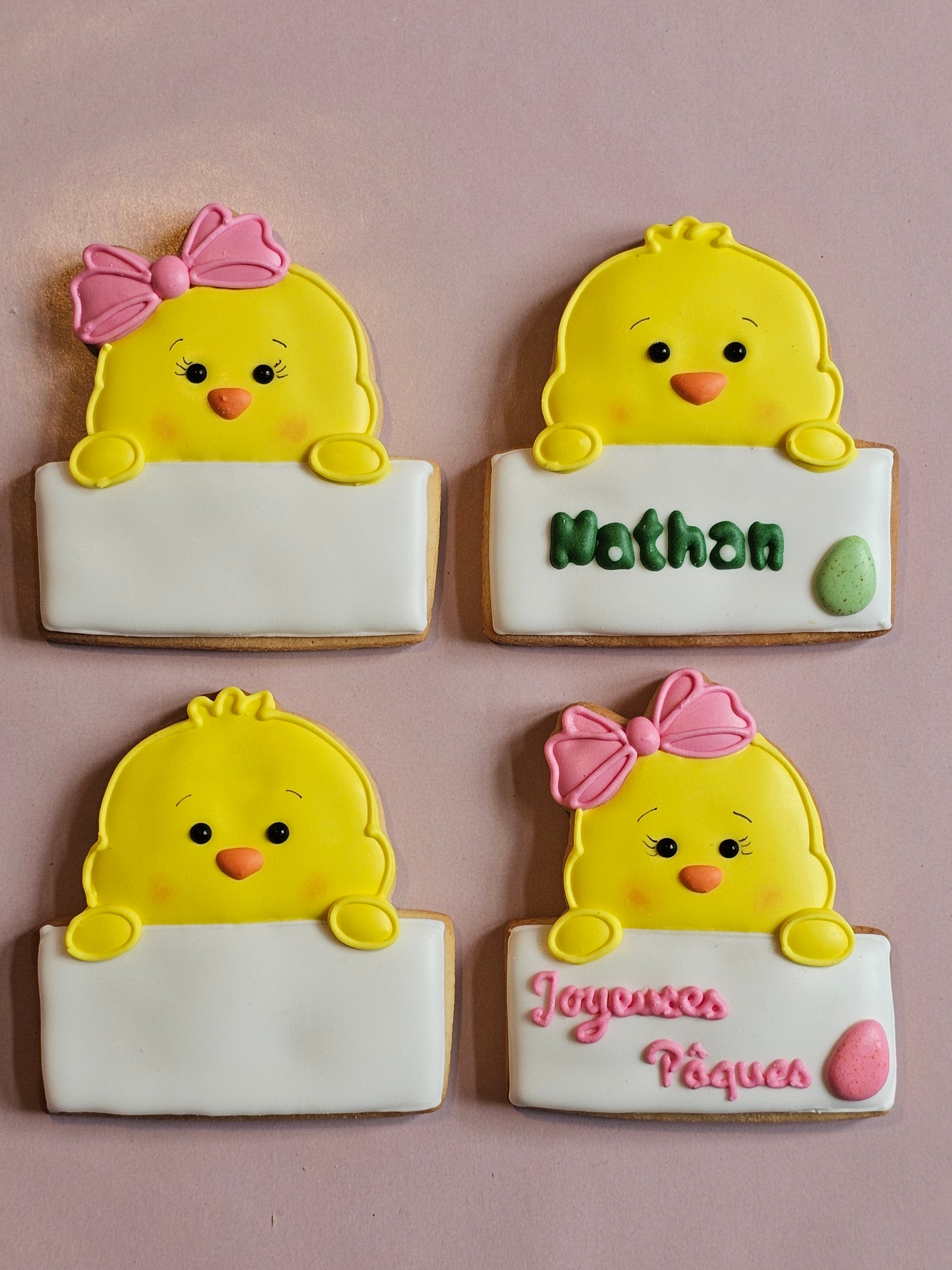 Votre texte au choix (à préciser dans l'espace personnalisation) : prénom, Joyeuses Pâques, Baptême + prénom + date, C'est une fille, C'est un garçon etc...